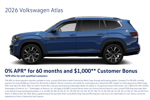 0% APR for 60 Months + $1,000 Customer Bonus