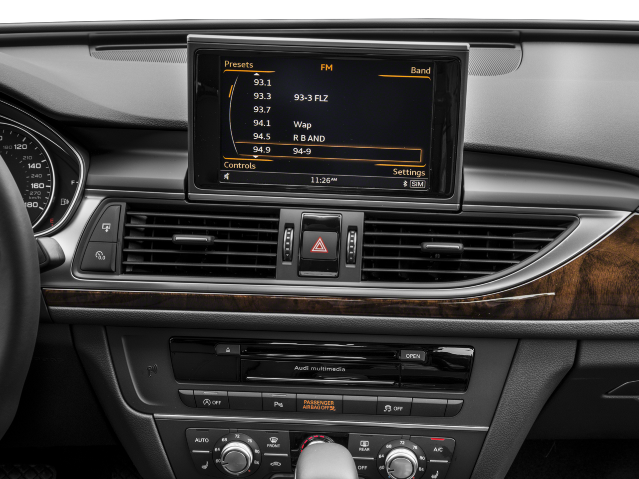 - Radio: Audi Music Interface w/iPod Cable -inc: Audi concert radio w/1 CD, Bluetooth® wireless technology preparation for mobile phone, SD card slot w/64 GB capacity (dual slots), SiriusXM Satellite Radio w/90-day trial subscription, 5-inch monochrome driver information system w/trip computer, Audi Sound System, 10 speakers including front center speaker and subwoofer in the rear, 180 watts and a 6-channel amplifier