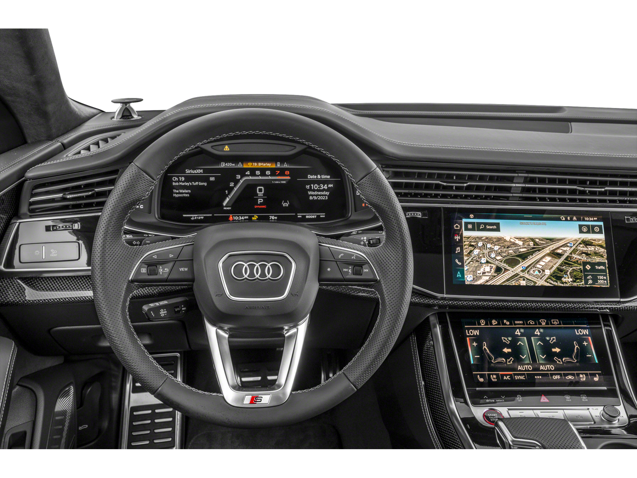 - Radio: Bang & Olufsen 3D Premium Sound System -inc: Audi connect CARE (limited time subscription), Audi Connect PRIME & PLUS (6 month trial subscription), Audi music interface w/front and rear USB ports (data and charge), Audi phone box w/wireless charging and signal booster, MMI navigation plus w/MMI touch response - 10.1" upper, 8.6" lower screen, Audi smartphone interface (wired Android Auto and wireless Apple CarPlay) and SiriusXM all access service (w/3-month trial subscription)